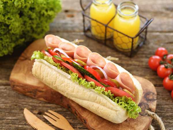 Дальше кладем ломти ветчины хорошего качества, их должно быть хотя бы по 2 штуки на сэндвич.