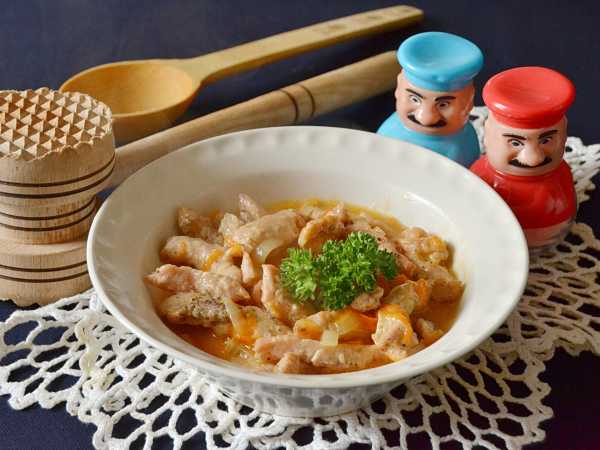 Возьмём ингредиенты для приготовления бефстроганов из свинины со сливками. Лучше всего нам подойдет постная часть свинины — корейка без кости.