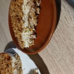 Выложить оставшееся тесто, посыпать миндальными хлопьями.