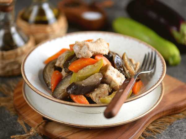 Между кусками индейки положите ломтики айвы, влейте немного воды из чайника. Накройте форму фольгой и отправьте ее в предварительно разогретую до 180 градусов духовку на 30-40 минут без конвекции.