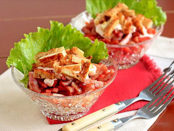 Чтобы салат симпатично выглядел при подаче, его можно выложить с помощью сервировочного кольца.