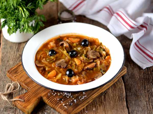 Варите суп до готовности овощей. В конце варки достаньте из супа луковицу - она нам больше не понадобится, и добавьте мелко нарезанную зелень петрушки и укропа.