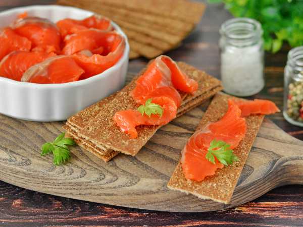 Спустя указанное время нарежьте мякоть горбуши пряного посола ломтиками и выложите на тарелку. Подайте к столу вместе с хлебом, поджаренными тостами и другой несладкой выпечкой.