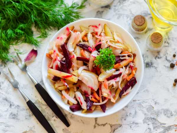 Всыпьте щепоть зиры, соль и перец по вкусу, влейте лимонный сок и оливковое масло первого отжима.