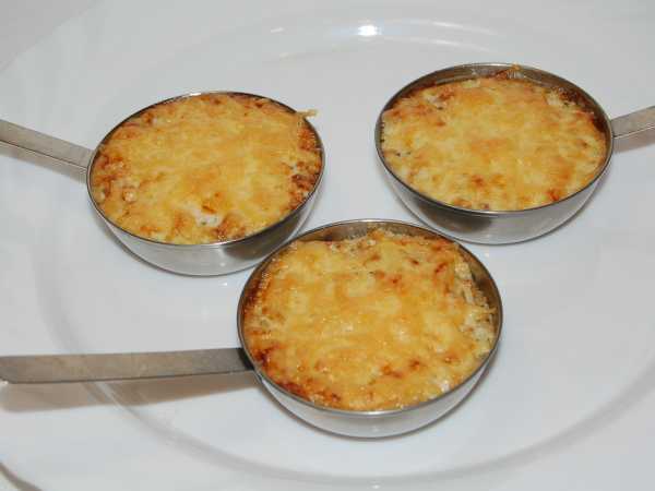 Жульен с кальмарами и креветками готов. Кушать его лучше горячим.