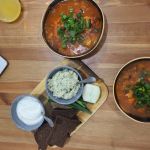 Разлить борщ с говядиной и фасолью по тарелкам, подать к нему сметану.