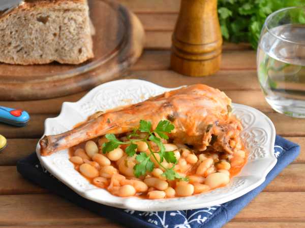 Подать индейку с фасолью в томатном соусе к столу, разложив по порциям.