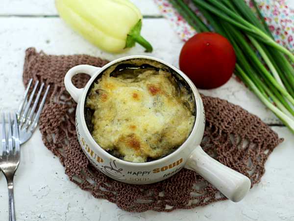 При запекании шампиньоны пустят сок, уменьшатся в размере, а сыр расплавится и станет золотистого цвета.