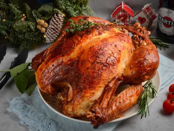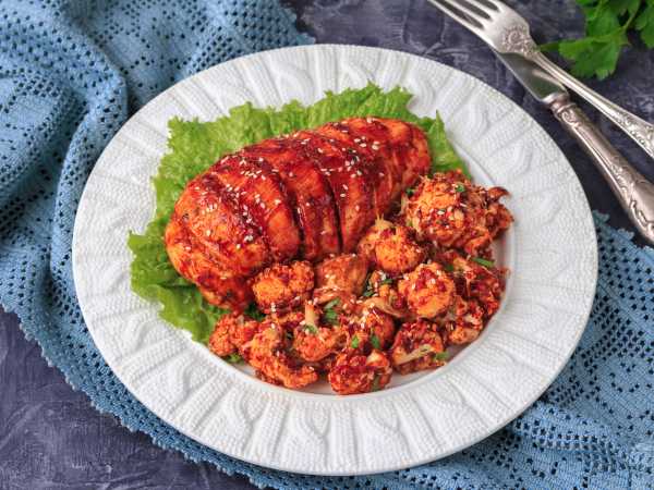 Подаем голени индейки с запеченными овощами, с салатом из свежих овощей или рисом. И о соусе не забудьте!