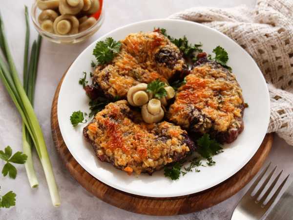 Сверху раскрошить сыр с голубой плесенью.