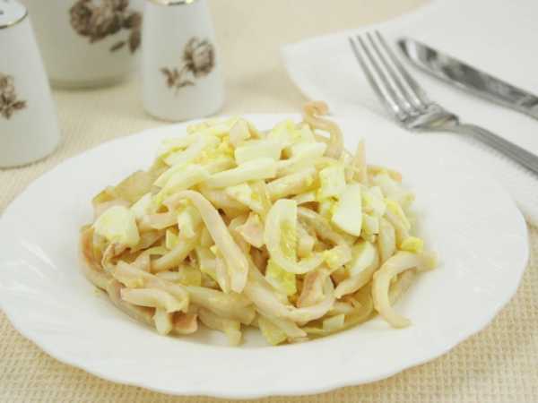 Сварите кальмаров и яйца, останется лишь натереть сыр и добавить чеснок для остроты. Чтобы салат с кальмарами, сыром и чесноком стал более сочным, добавьте вкусный майонез - соус может быть магазинным или домашним, на ваше усмотрение.