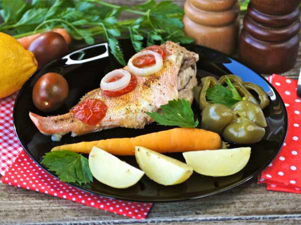 Достаньте рыбу из пергамента и подавайте вместе с овощами. Дополнить порцию можно гарниром, свежей зеленью.