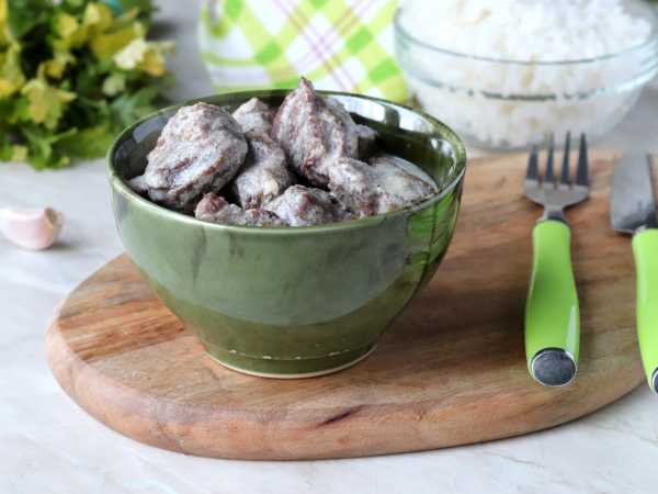 Шампиньоны нужно добавить в конце приготовления и тушить вместе с мясом около пятнадцати минут. Можно их предварительно обжарить на растительном или сливочном масле. Но мне нравится просто подсушить кусочки шампиньонов на сухой сковороде на сильном огне около пяти минут, так получается особенно ароматно.