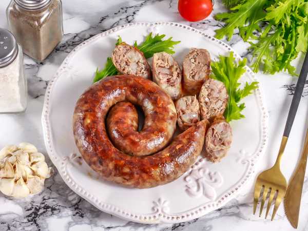 Специи можно подбирать на свой вкус. Вместо гранулированного чеснока можно добавить свежий. Количество специй тоже можно менять на свой вкус. У меня колбаса получилась нейтральной — в меру перченой, вкус чеснока тоже не доминирует. Если хотите, чтобы вкус был более выраженным, то специй добавляйте больше.
