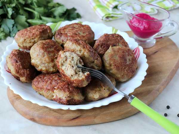 Обжарить нижнюю сторону, затем перевернуть и обжарить вторую. Если желаете котлеты с подливой, то в конце жарки в сковороду можно добавить немного воды и пропарить котлеты несколько минут. Также можно добавить в сковороду ещё одну нарезанную луковицу, немного обжарить вместе с котлетами, а затем добавить сметану, разбавленную водой. Выбирайте тот вариант, который вам больше нравится.