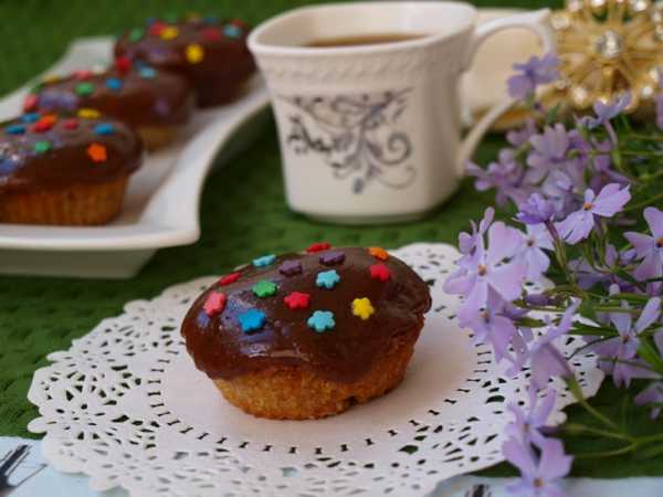 Готовые кексики немного охладим. На вкус они получаются не очень сладкими, овсяная мука немного чувствуется во вкусе.