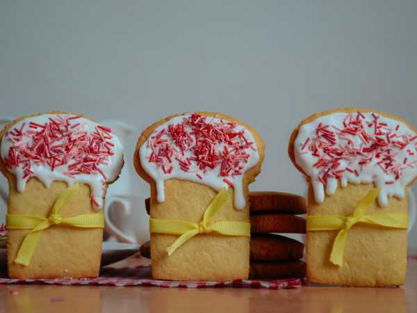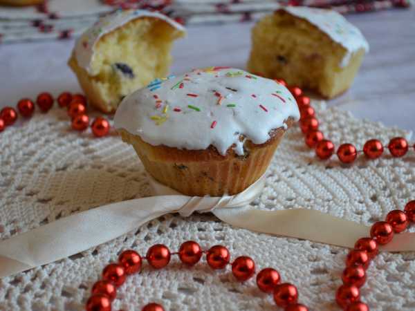 Дайте куличам немного остыть, после чего украсьте по своему желанию. Как украсить пасхальную выпечку решать только вам. Я, например, покрыла их белковой глазурью и посыпала разноцветной кондитерской посыпкой.