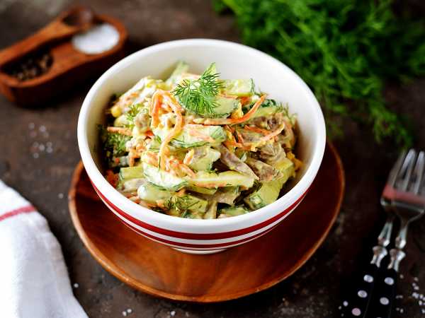 Салат заправить сметаной или майонезом.