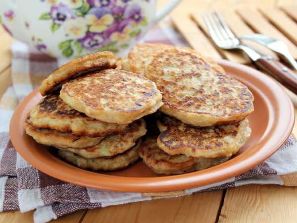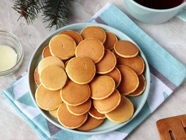 Разогрейте сковороду, влейте немного растительного масла, выкладывайте в него по полной столовой ложке с горкой теста и выпекайте на умеренном огне минуты по 3 с каждой стороны. Не лейте масла много, поскольку оно моментально впитывается блинчиками.