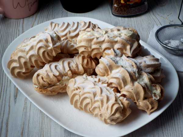 Отдельно взбейте жирные сливки с сахарной пудрой в пышную массу.