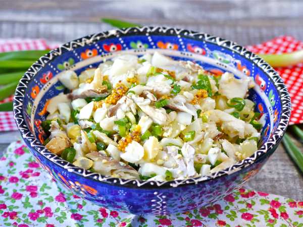 Салат с курицей, пекинской капустой, сыром и яйцом сразу можно подавать к столу.