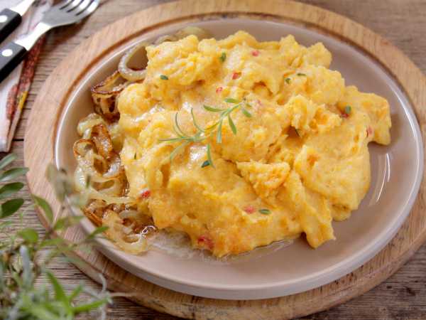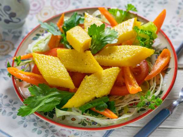 Через 20 минут отключите огонь и добавьте в сотейник сливочное масло. Перемешайте поленту с маслом и, закрыв крышкой, оставьте на 10 минут для настаивания.
