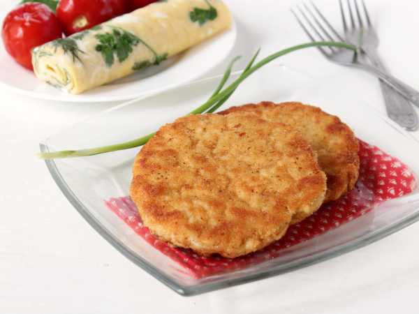 Рыбный шницель подают с любимым гарниром и свежими овощами, украсив листиками петрушки, кинзы или укропа.