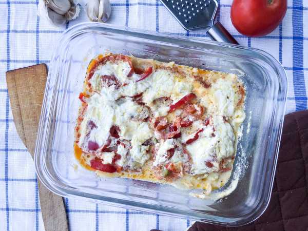 Фасоль выложите в емкость для запекания.