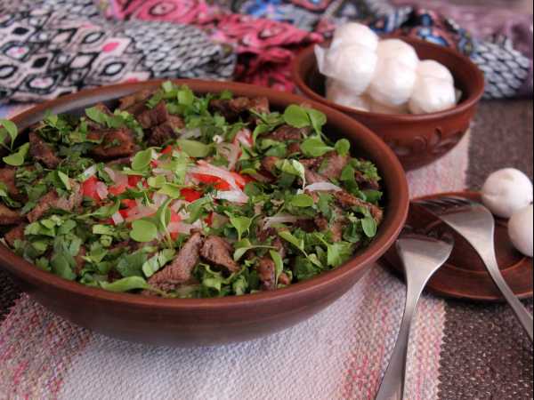 И наслаждайтесь насыщенным вкусом этого яркого салата. В салате замечательно сочетаются с овощами и цедра, и зира, и чеснок.