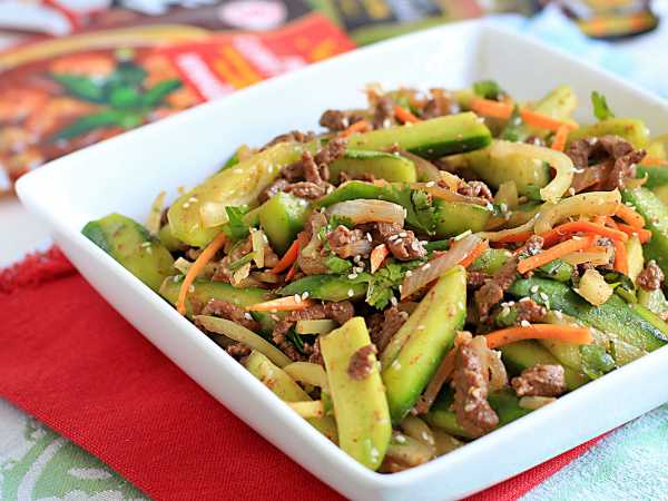 В салате отлично сочетаются пряная говядина, свежие, хрустящие огурцы и сладость болгарского перца. Кунжут, как всегда в азиатских салатах, добавит определенную вкусовую нотку. Приятного аппетита!
