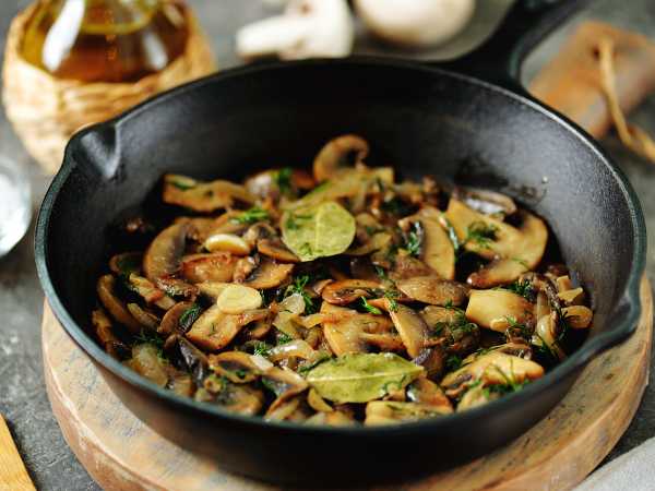 Добавить грибы, посолить, поперчить и готовить до выпаривания жидкости.