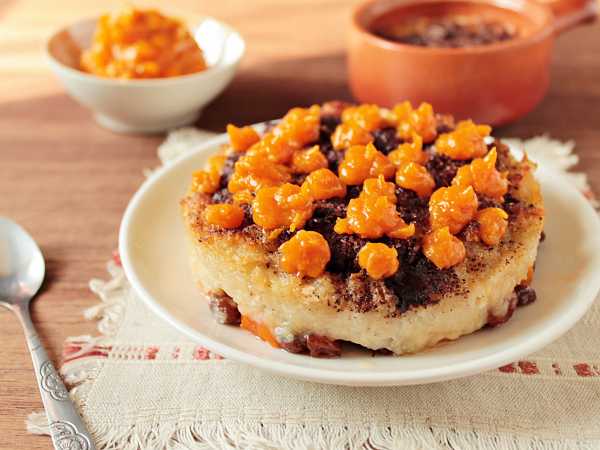 Готовый морковно-творожный пудинг охладим полностью, выложив на деревянную поверхность.