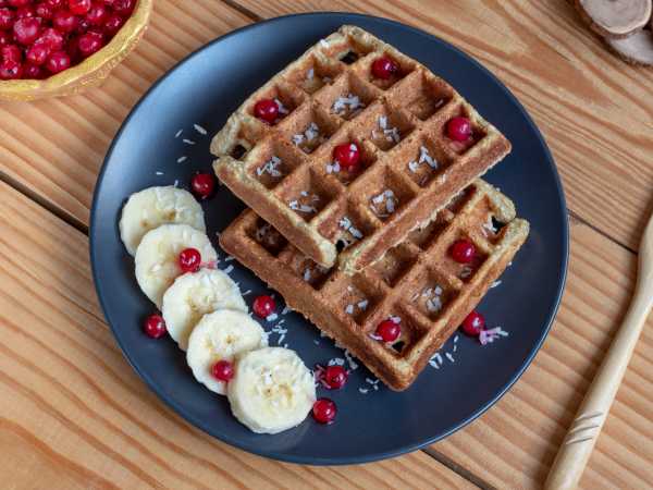 Вафли из кукурузной муки в вафельнице получаются очень вкусными и аппетитными. Подавайте их на стол с вареньем или мёдом.