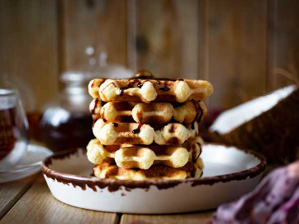 Подготовьте необходимые ингредиенты для создания румяных сливочных вафель в вафельнице.