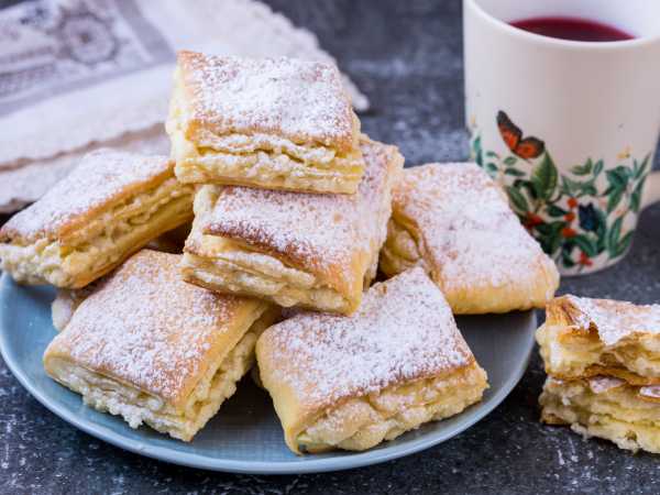 Выпекайте слойки с фруктовой начинкой в разогретой до 180 градусов духовке в течение 20-25 минут, до красивого румянца. Точное время приготовления напрямую будет зависеть от вашей духовки, ориентируйтесь по цвету. Готовую выпечку остудите на металлической решётке.