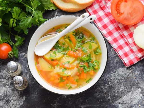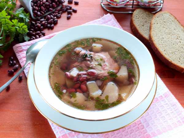 Диетический фасолевый суп готов. Подавайте его горячим, украсив свежей зеленью. Приятного аппетита!