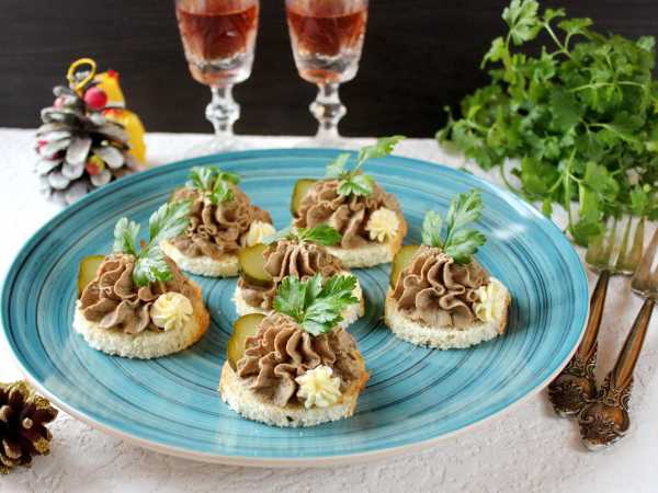 Выложите сухарики для канапе на тарелку. Вы можете сделать их и в домашних условиях, нарезав кусочки хлеба порционно и поджарив или подсушив их.