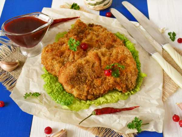 Клюквенным соусом обильно смажьте мясо со всех сторон. Оставьте мариноваться хотя бы на час.