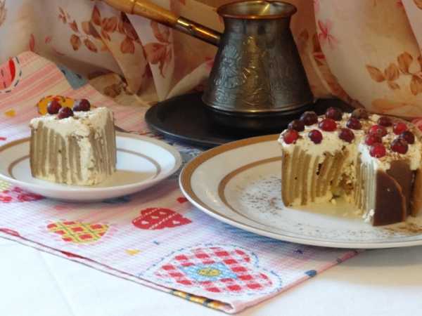 Накройте вторым коржом. Покройте верх и бока оставшимся кремом.