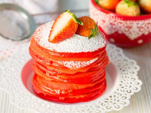 Подать оладьи к столу с молоком или к чаю. Полить можно вареньем, сгущёнкой или мёдом.