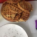Разогреть электровафельницу и при необходимости смазать рабочую поверхность маслом. Выложить тесто столовой ложкой в вафельницу и выпекать согласно инструкции до готовности. Я выпекаю каждую партию вафель 6 минут.