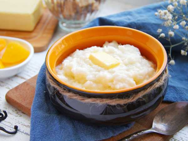 Возьмите продукты для приготовления молочной рисовой каши с яйцом.