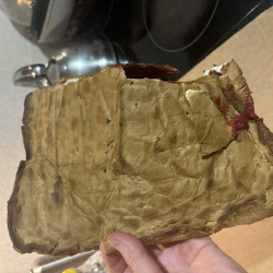Остудить корж на коврике, а затем разрезать на три полоски.