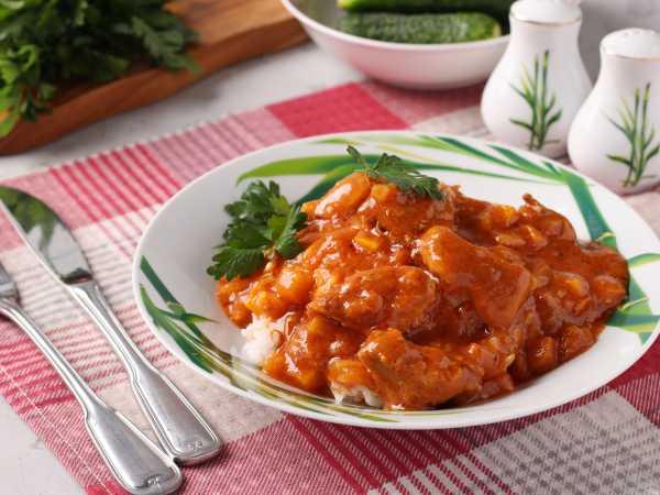 Густоту соуса регулируйте по вкусу, добавляя больше или меньше воды. Для приготовления возьмите заднюю часть свинины, вырезку, шейку, корейку.