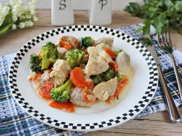 Добавьте в сковороду нарезанную крупным кубиком свинину, обжарьте до румяной корочки, затем уменьшите огонь и жарьте минут 20. При необходимости подлейте немного воды или бульона.