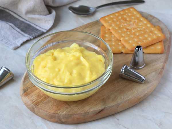 Снимите кастрюлю с плиты и накройте крем пищевой пленкой в контакт с кремом. Отправьте в холод.