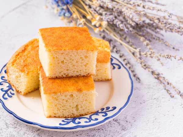 Готовый манник полностью охладим и только тогда приступим к нарезке на порционные кусочки. Манник в разрезе имеет пористую структуру и выглядит очень аппетитно. Приятного аппетита!
