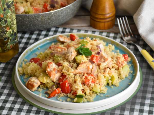 Чечевичная каша с филе индейки и овощами готова.
