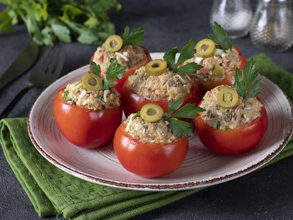 Помидоры, фаршированные мясным салатом