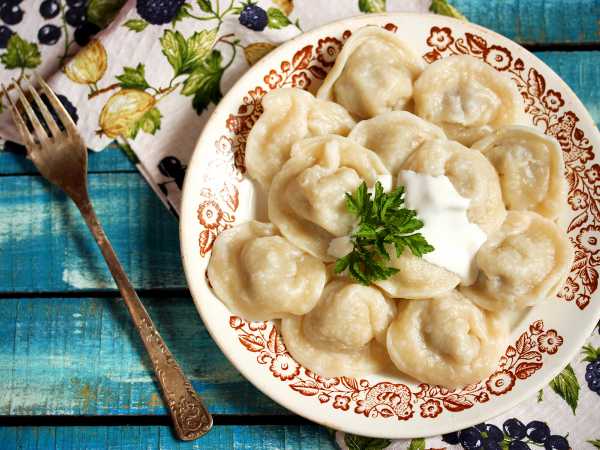 Шумовкой вылавливаем готовые пельмени из воды и выкладываем в порционную тарелку, подаем к столу со сметаной.